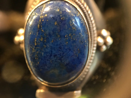 Antique Tibetan sterling silver Lapis lazuli ring, lapis lazuli ring, Genuine lapis lazuli ring. Lapis lazuli saddle ring, boho ring, gypsy.