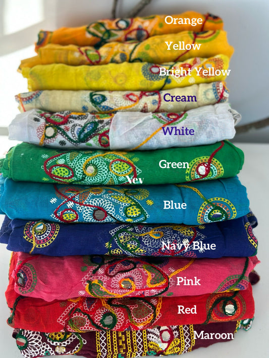Cotton Boho scarfs with mirrors/festive scarfs, Gypsies scarves, Banjaras scarves.. light cotton colorful scarves.
